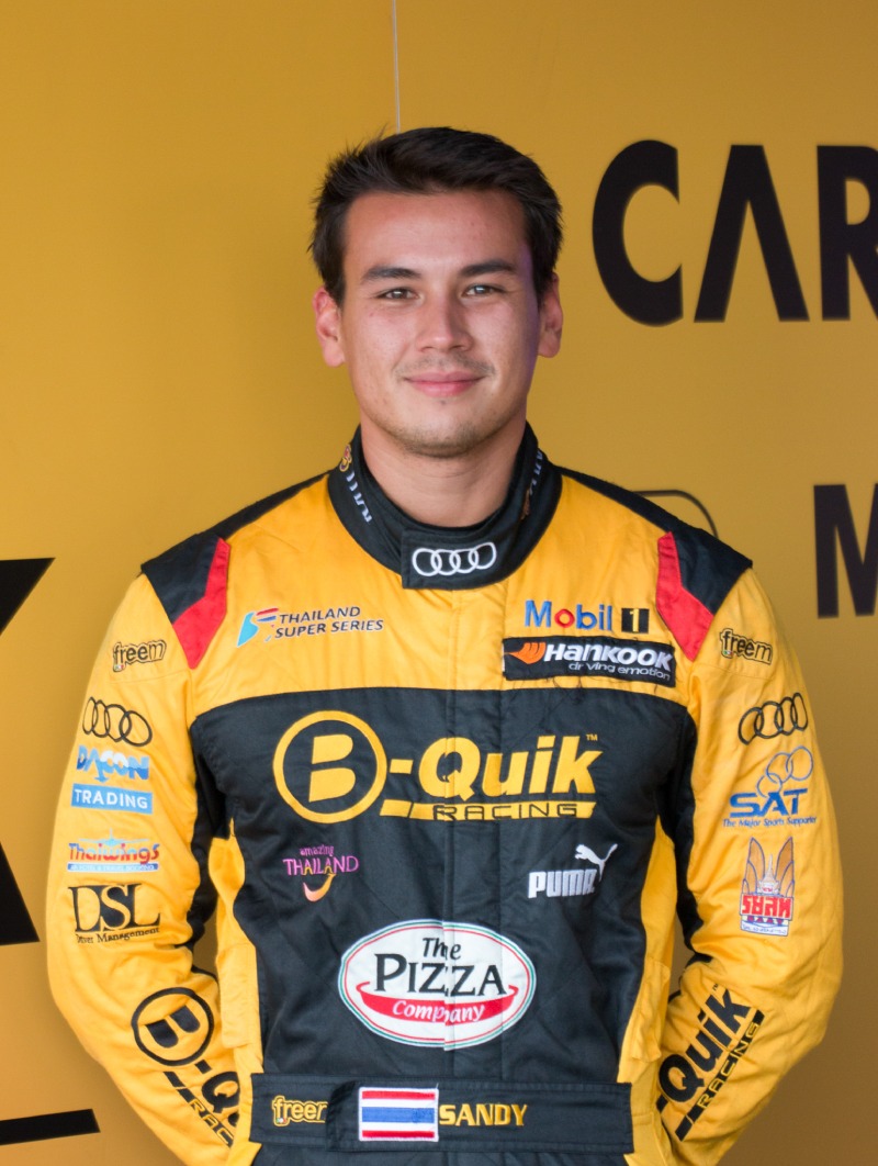 แซนดี้ เคราแก้ว สตูวิค นักแข่งไทย ภายใต้การสนับสนุนจาก เดอะ พิซซ่า คอมปะนี , บี-ควิก , อาวดี้ สปอร์ต เอเชีย, การท่องเที่ยวแห่งประเทศไทย, เจ็ท 8 เอวิเอชั่น , การบินไทย, พูม่า ไทยแลนด์, ดาคอน เทรดดิ้ง, ไทยวิงส์ทราเวลเอเจนท์ ,ราชยานยนต์สมาคมแห่งประเทศไทย และการกีฬาแห่งประเทศไทย